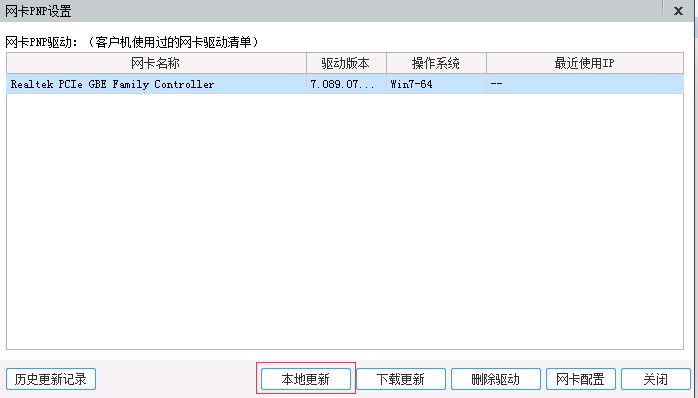 1. 选择完网卡驱动后,点击“本地更新”,如下图所示: