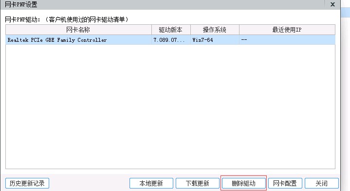 选择完网卡驱动后,点击“删除驱动”,如下图所示: