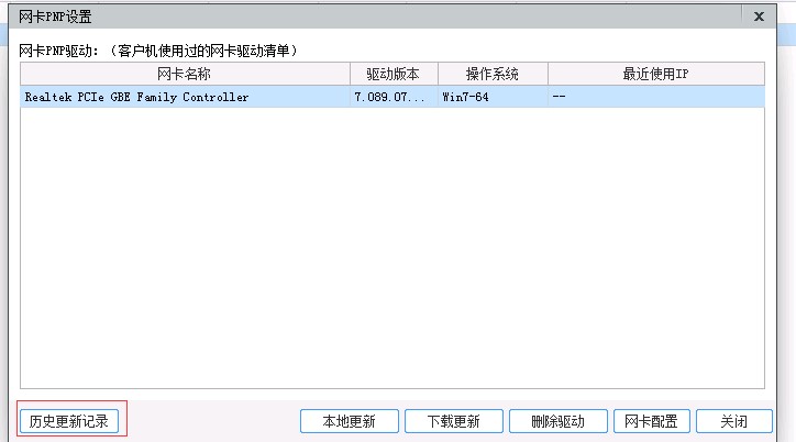 1. 选择完网卡驱动后,点击“历史更新记录”,如下图所示: